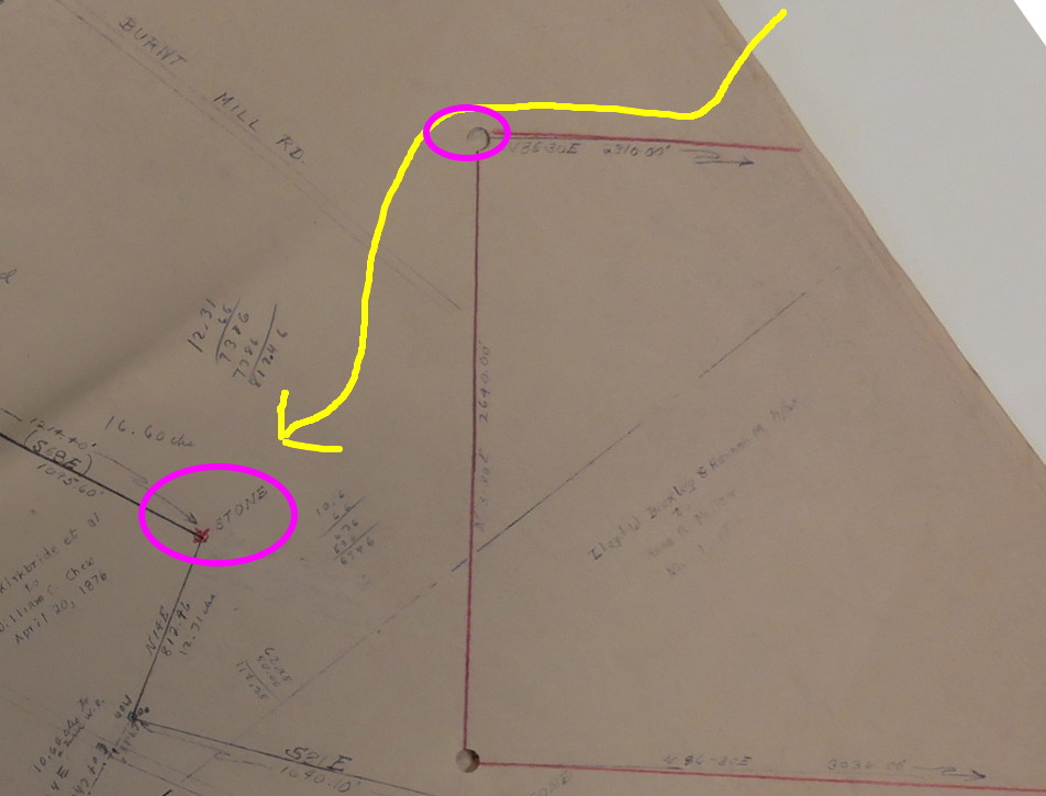 The stone at the back of the Chew property is circled as well as a corner of the blueberry field where we were hoping to find the state monument.