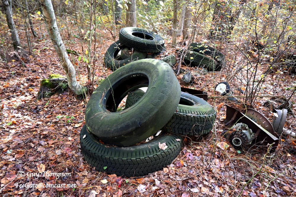 Judging by the looks of the tires, someone long ago used what now is state property as a dump for engine parts, tires and rolled up fencing. I doubt anyone living there now had anything to do with it.