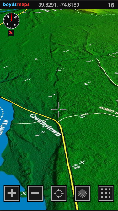 https://online.boydsmaps.com/#16/39.6291/-74.6189/lidarHD This is the Buttonwood Hill end of the road.This is Boyds Lidar in the Pines and is the only map where the road shows well.