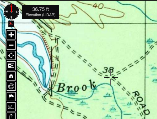 I was going by the topo lines, or abscense of them. They are 10 feet, and there is only a 30 and a 40 in the neighborhood.