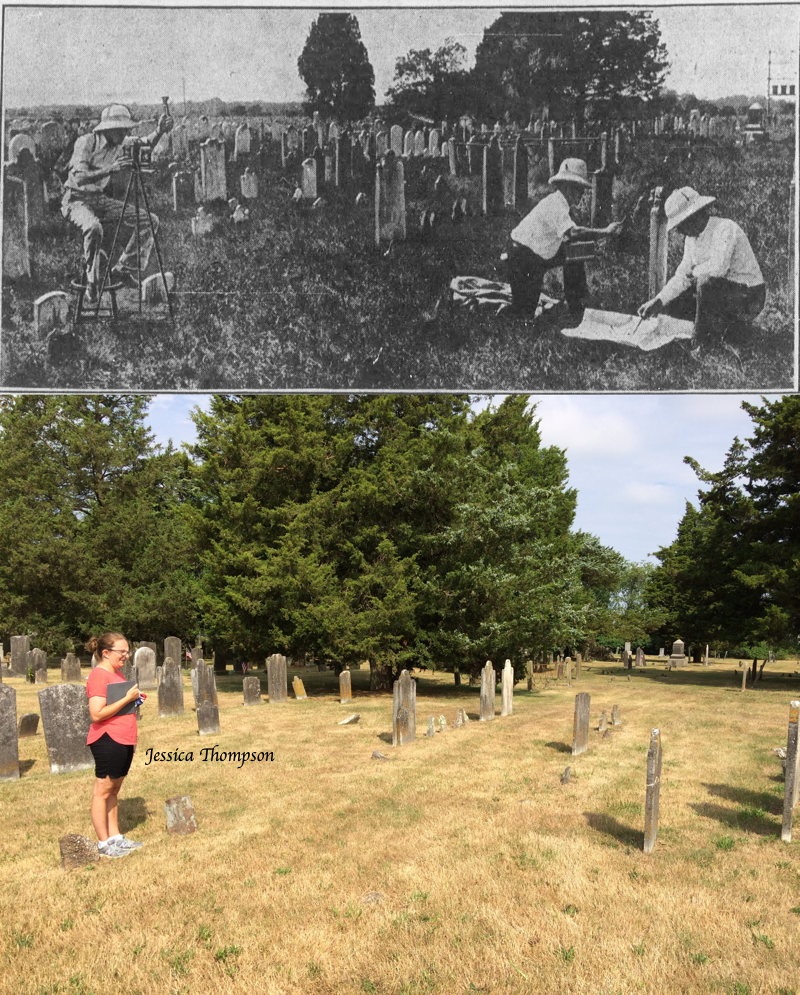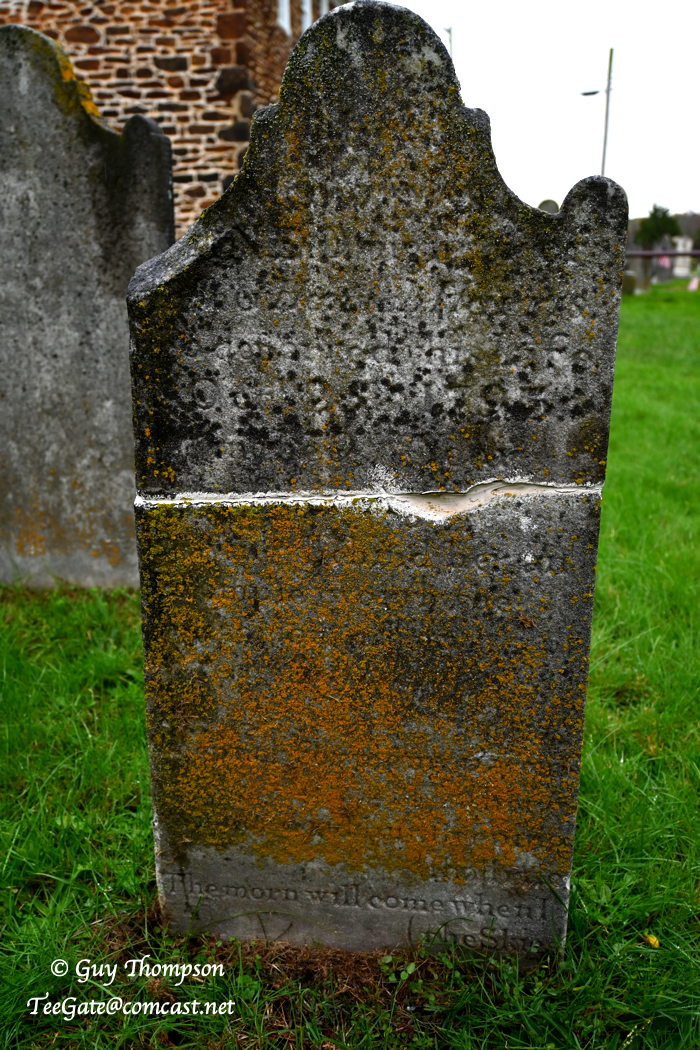 The two of us visited the Fairton cemetery again today to take a photo of the gravestone Beck was photographing in the photo in post 252, and to also take a photo at the location on page 190 in the Forgotten Towns Of South Jersey paperback. It was perfectly dry here when we left home, and by the time we got there it was raining pretty hard. I had to leave my book in the car and use my cell phone as a guide. Unfortunately, it was not a good way to go so my photo is a little too close. In any event, this is the best I could do today.